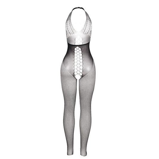 SUBBLIME - 951849 Bodystocking z odkrytymi miseczkami i siateczką z dekoltem halter, czarne, jeden rozmiar