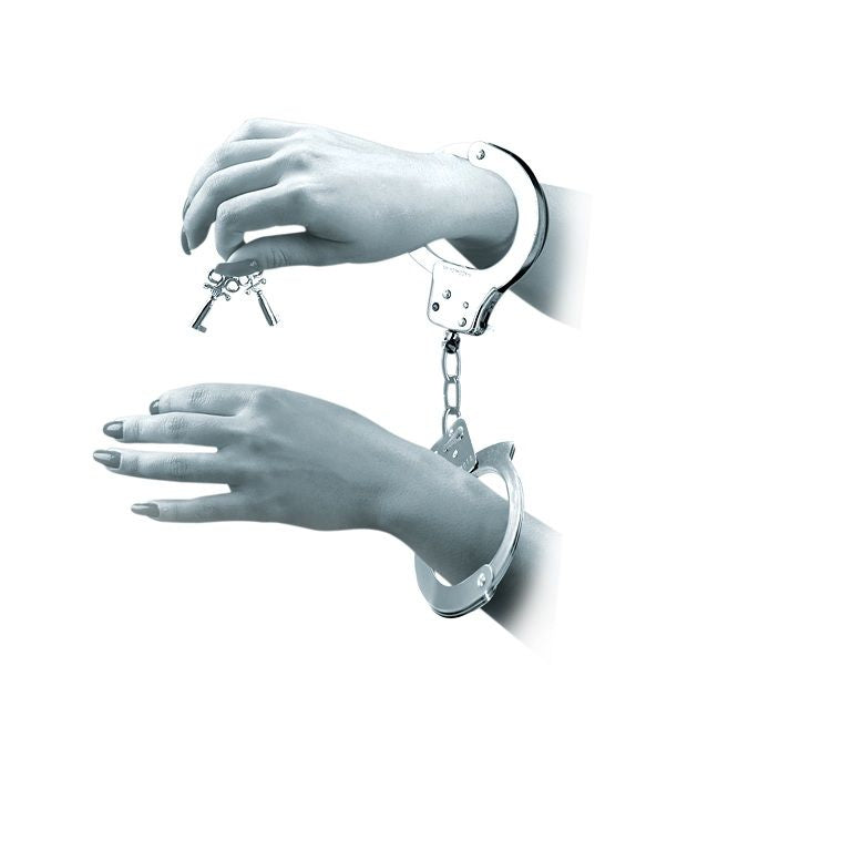 - Metalowe kajdanki z kluczem